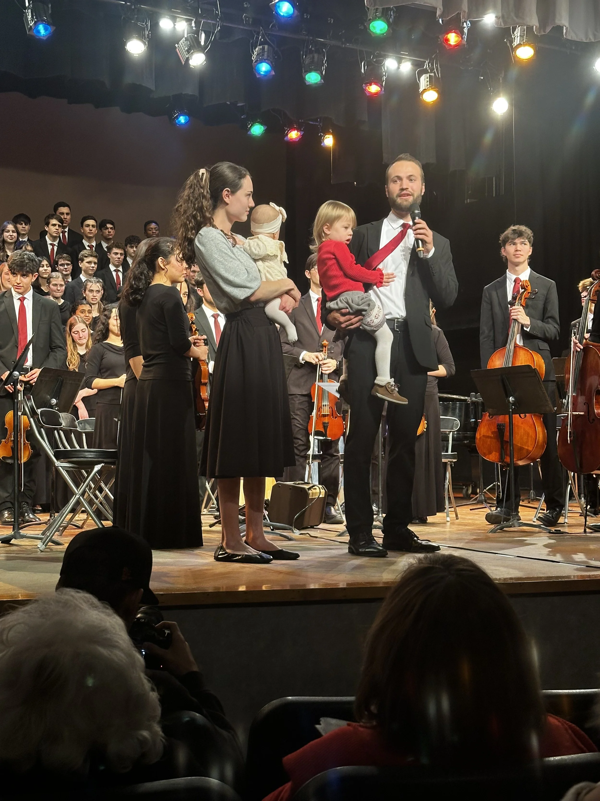 To me, beautiful sacred music is a powerful way to lift hearts up to Jesus. Here I am with my family participating in worship through song while hosting Fountainview Academy for our local community at the Goddard Center in Ardmore in December of 2024.